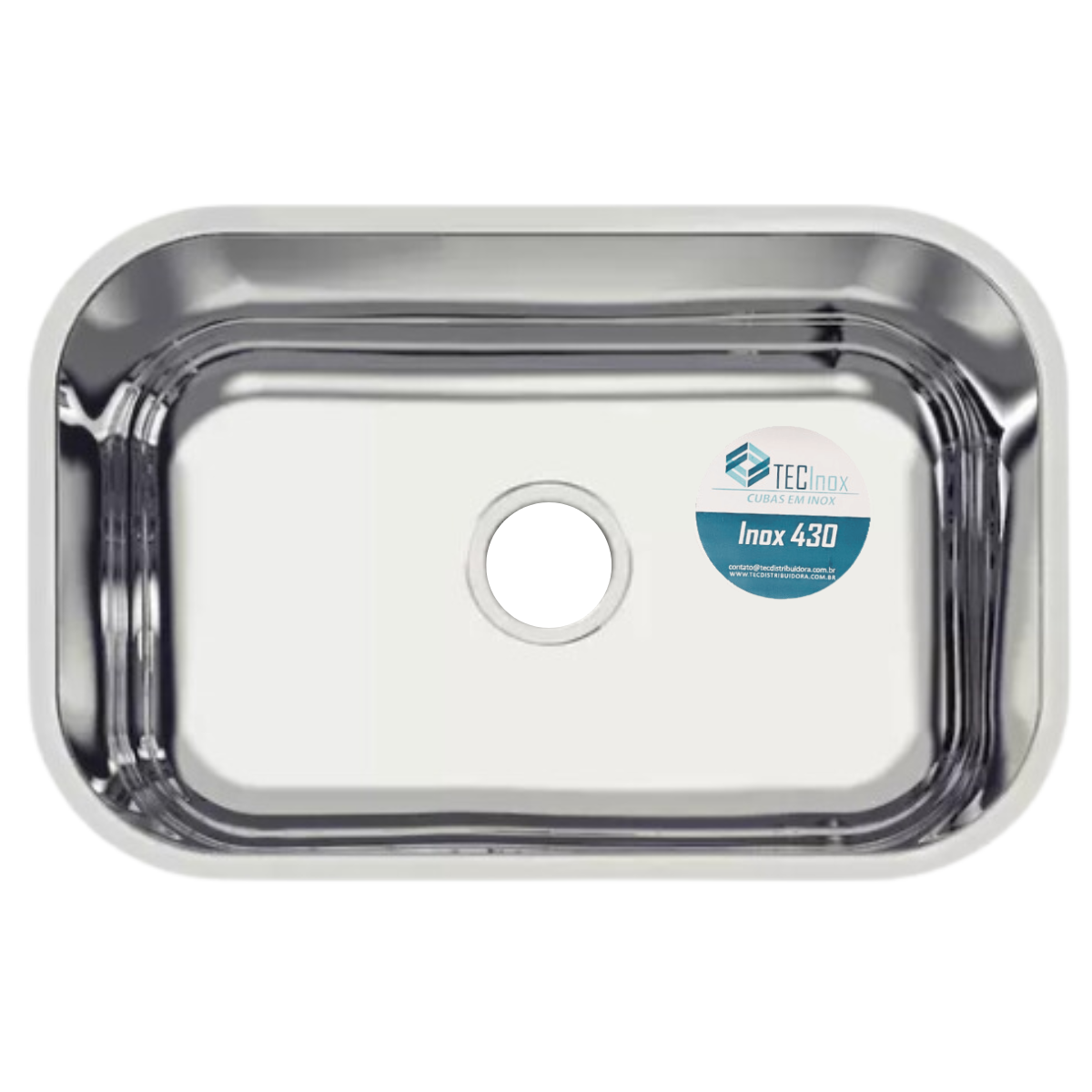 Este modelo de cuba TeC Inox é produzida em aço inox AISI 430 com acabamento alto brilho, proporcionando uma elegância em seu ambiente.