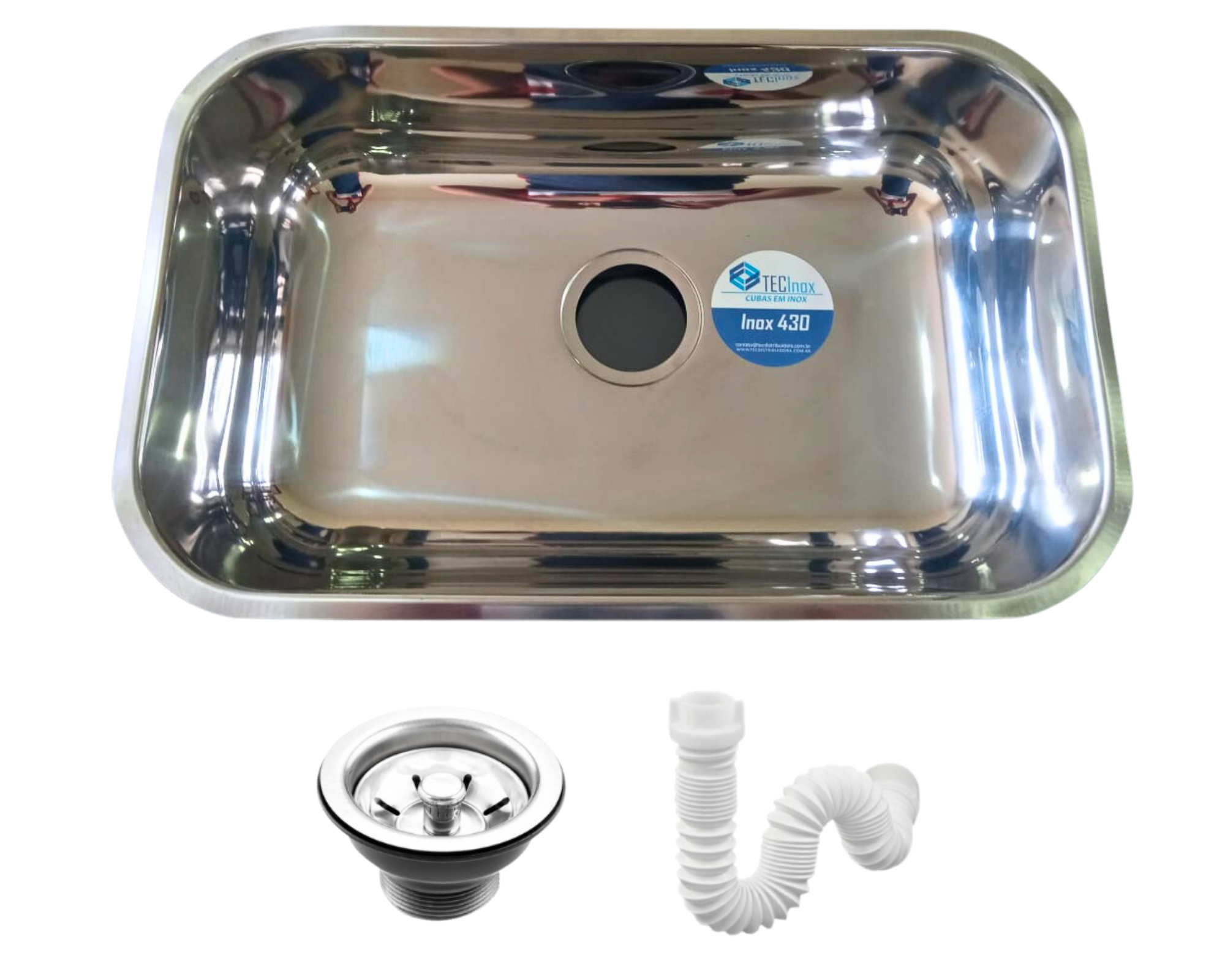 Este modelo de cuba TeC Inox é produzida em aço inox AISI 430 com acabamento alto brilho, proporcionando uma elegância em seu ambiente.